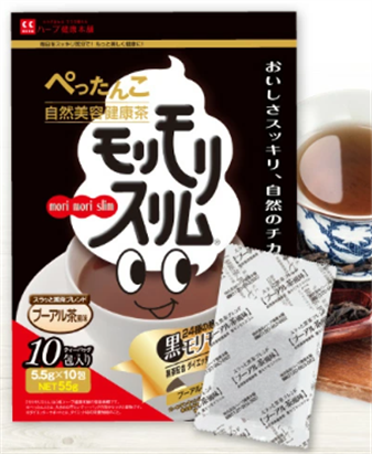 黒モリモリスリム プーアル茶風味は、「美味しく続けられる健康茶」+「便秘解消やデトックス効果」